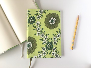 這是一款使用德國復古織物作為封面的軟封面筆記本。色彩與圖案充滿了市面上難尋的懷舊氛圍。內頁為素色,因此用途廣泛。輕薄且便於攜帶。**材質**[封面] 德國復古織物 (棉質,黃綠色)[內頁] 西洋紙 (白色) **80頁**[書擋] 石紋風西洋紙 (米色)[書籤] 聚酯纖維 (卡其綠)**尺寸**: 縱 215 mm × 橫 150 mm × 厚 6 mm**禮品包裝**如需禮品包裝,請由此頁面選購↓https://jp.pinkoi.com/product/h2xgBS6L請一併訂購禮品包裝服務。