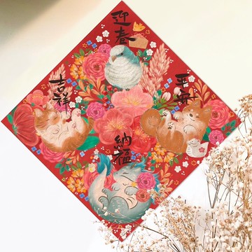 2024的龍年春聯,一樣可以由四張小張的方斗春聯,組合成一幅圖畫。在花草之間,在春聯的福氣陶偶與貓狗之間,各張方斗春聯可以組合,也可以獨立,佈置在妳/你的生活空間,伴隨著新的一年。每一天都要好好生活 ( ᵕ‧̮ᵕ )✩⡱·*