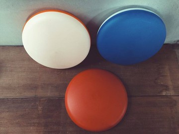 80~90年代 早期外銷 歐美日 馬卡龍燈有三種配色 底部都是白色 上蓋有分別有 藍色, 橘色, 紅色 , 白色(上下都白色沒錯)背後有吊掛孔 不管是臥地燈 壁燈 立燈 都非常好變化燈具直徑31cm 厚度約8cm線長2米1電線有附插頭與開關燈頭規格e27一般燈泡均可使用此商品沒有附光源 建議使用5W燈泡 會比較溫馨售完為止!!產地/製造方式早期台灣製造 外銷歐美日