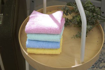 功夫毛巾 棉柔吸水毛巾 條紋色紗毛巾 FT03 6條 混和顏色 藍色 + 黃色 + 粉色