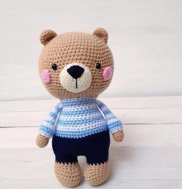 米歇爾熊毛絨玩具你可以選擇玩具的顏色。所有可能的顏色選項都顯示在產品照片中。可能的變化男孩 - 女孩。請寫信告訴我您對以下玩具顏色的選擇。材料和尺寸- 紗線:壓克力- 填充物:低過敏性 hollofayber- 眼睛由壓克力珠製成並牢固縫合- 高度:約 10 英寸(26 厘米)年齡建議:該玩具專為三歲以上兒童或成人設計。護理說明:玩具可以水洗。只能在不超過 30 度的溫度下進行精細洗滌。將玩具放在水平表面上晾乾,不要放在電池或加熱器上。針織玩具是生日或其他愉快假期的絕佳禮物。這是給孩子和親人的禮物。玩具是用愛創造的,只會帶來積極的情緒。我會定制這個產品,特別是為你!訂單生產時間 2 - 4 個工作日。如果您有任何其他問題,請隨時與我聯繫。感謝您光臨我的商店,祝您購物愉快!!!最好的祝福,伊莉娜