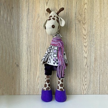 長頸鹿穿著白紫色棉質襯衫和紫色燈芯絨褲子。由於製作的特點,你不能脫掉衣服。該玩具到角尖的高度約為。 18 英吋(44 公分)。長頸鹿由麻製成,填充優質衛生的中空纖維。該玩具採用緊密填充技術製成,可讓玩具自行站立和坐下。手臂和腿是可動的。玩具的構造中未使用金屬零件或電線。這些娃娃適合 3 歲以上的兒童。它質量上乘,製作牢固,如果您不粗暴地對待孩子們,它將成為孩子們玩耍的好伴侶。它還可以是托兒所或家居裝飾的美麗補充、精美的生日禮物、聖誕禮物以及娃娃收藏的絕佳補充。保養說明它不能被清洗。允許用軟刷清潔灰塵。每個玩具都是完全手工製作的,因此可能與照片上的玩具略有不同。我嘗試讓它們盡可能相似。如有任何問題或意見,請隨時與我聯絡。感謝您的光臨!