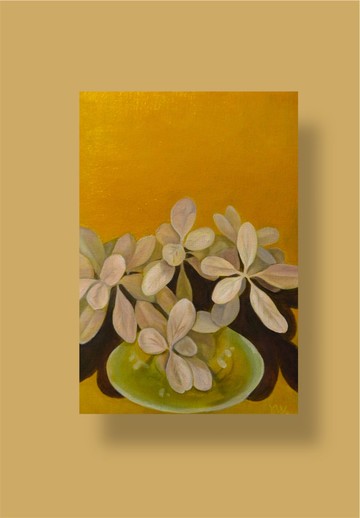 作品皆是獨一無二,非印刷品。靜植物是我的原創作品,創作2025年。畫作尺寸是21x29.7公分使用油畫顏料繪製於畫布/紙上,妥善存放可保存永久。平時可收納至文件夾內。照片內有使用的畫紙材質的示意照片。