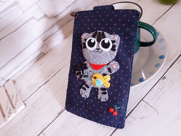🥰可愛貓小魚包包手機袋 🥰目前此款手機袋均為黑底點點款背帶長度可以調整可掛胸前也可斜揹後面設計有拉鍊收納零錢紙鈔掛胸前隨時使用很便利每款均會有不同的地方小細節請放心交給設計師製作純手工縫製訂製時間約7~20個工作天(不含假日)🥰此款手機包實際尺寸約寬14cm*高19cm🥰大手機也放的下後拉鏈顏色以設計師搭配為主不挑色其他尺寸請選別的選項或是訊息討論★★不織布維護事項與清潔步驟★★1.可先使用一般膠帶黏除附著在上面的粉塵2.再來可用剪刀減去突起的毛球3.最後使用膠帶再將剪下的棉絮黏除即可**不織布雖可手洗但是勿扭轉會變形**請按壓風乾就可以囉!