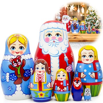 兒童聖誕嵌套娃娃 7 件套 - 俄羅斯聖誕小雕像