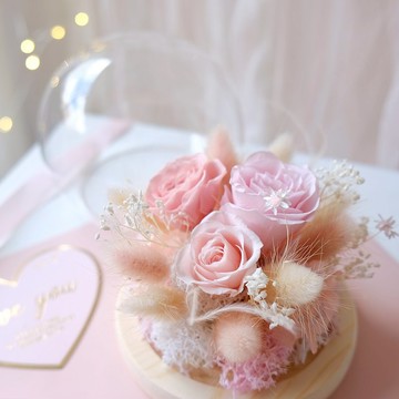 伊登花室 永生粉玫瑰 玻璃罩永生花 乾燥桌花