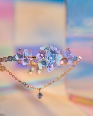 洵 - 繡球綵結雙層手環Out of the Blue Lilac Hydrangea Bouquet Double-layered Bangle三個並排的小花球列隊歡迎!繡球花的藍紫漸層是以添合黏土工藝製成,以達至最柔和的漸變效果。手環為開口設計,尺寸可調整。Material | 材料Gold-Plated Metal Chain | Handcrafted Resin Flower | UV Resin Hardening Coating | Swarovski Crystal Finishing | 加工Fading Resistant | Anti-allergy防脫色 | 防敏感Size | 大小Free size, adjustableBridge Chain 8cmPackaging | 包裝All products will be nicely and carefully packed in our wooden boxes.我們會備有精美木盒包裝 ,為產品提供最完善的保護。 Tailormade | 個人化訂造A complimentary 2-month warranty included in each purchase. Customization after purchase is welcomed. (size, length, etc.) Please visit our concept store to enjoy your warranty service. Address: Pamycarie, Shop 120, 1/F, K11, 18 Hanoi Road, Tsim Sha Tsui, Hong Kong客人購入作品後可享兩個月產品保養,歡迎親臨Pamycarie K11概念店進行長度/大小更改。 地址:香港九龍尖沙咀河內道18號K11 1樓120店鋪 11AM-900PMHandcrafted in Hong Kong | 產地香港 手工製作All products are made-to-order. Please note that each of the handcrafted products is unique and may slightly vary from website images. We will make sure to only deliver perfections to our customers. 所有作品均為接單訂製,請注意每件手製作品均為獨一無二,可能與相片有微小出入,但我們會確保把最完美的作品送到客人手上。Purchased item(s) will be shipped out within 10-14 business days. For urgent orders, please kindly contact us to check inventory before placing your orders. You may choose to pick up your parcel at our stores or have the parcel mailed by HK Post or SF Express. 作品會於下單後的10至14個工作天內完成並寄出。若希望查詢現貨/急件,請於下單前預先聯絡我們確認存貨量。客人可選擇親臨Pamycarie店自取作品,或是選擇香港郵政或順豐郵寄服務。後記Pamycarie presents the refreshing summer collection featuring the Hydrangea. The bloomy flowers in the garden and woods cools people off with a touch of blue. As miraculous as it is, the Hydrangea is a mirror of the soil and water. Its colours vary depending on the acidity of the soil. Water is also crucial to all species, not to mention the Hydrangea. The flower soon withers once it is away from water. Still, if it is hydrated promptly, it rejuvenates and shows its true colours.Pamycarie帶來了清涼的夏日繡球系列,在夏日庭園裡面、林蔭之間,總是有一簇簇繡球花佇立,為人們帶來清爽的一抹藍。 繡球花就是土地和水份的一面鏡子,即使是同一品種的繡球也會隨土壤的酸鹼度不同而呈現出不一樣的顏色。繡球花也是一種極度需要水份的植物,一旦繡球離開水源,在短時間內就會枯萎,但如果及時給她足夠的水份,她又可以再次綻放如初。
