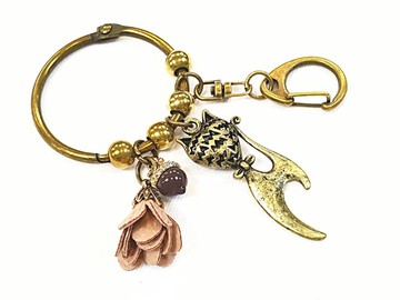 Paris*Le Bonheun。夢幻森林系列。可愛貓咪。彩色橡果花朵鑰匙圈