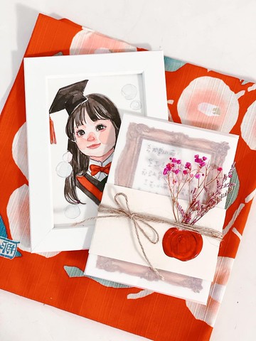 https://live.staticflickr.com/65535/51228395595_ea81ca743f_b.jpghttps://live.staticflickr.com/65535/51226614912_d7d219d567_b.jpghttps://live.staticflickr.com/65535/51228395560_74aa6392d7_b.jpghttps://live.staticflickr.com/65535/51226622752_f7305a1b20_b.jpg讓我們的畢業禮盒為您傳達祝福吧!每份禮盒含一張6吋(10*15cm)水彩似顏繪+手工蠟封乾燥花水彩卡片喔,蠟封還是可愛的喵掌圖案~可代書寫信,花朵及包裝繩可自己選,花朵則有粉粉滿天星及紫色的卡司比亞兩種選擇~不需有穿學士照照片,我們可以為你合成!可選擇要穿學士服+學士帽,或是單純學士帽,畫作也可以不要花朵~當然若您只是想要這方案致贈非畢業生的禮物也歡迎委託喔!