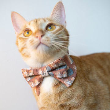 橘之趣 獨家手繪猫星人圖案寵物項圈 橘貓領結造型啡色圍脖 印名