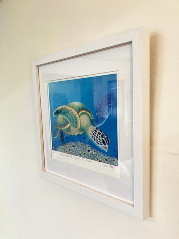 尋找你的快樂仙境|限量版畫 精選相框靈巧的藝術創作,將大自然的美好帶入空間,融入您的日常生活。/版畫製作規格/✦ 名稱:尋找你的快樂仙境(Searching For Your Wonderland)✦ 尺寸:37 x 37 x 3 cm✦ 圖檔:高解析度美術館收藏繪畫等級專業掃描✦ 印製:Epson藝術微噴,典藏等級✦ 材質:英國Innova藝術紙,300 gsm✦ 外框:精選相框✦ 製作年分:2022年✦ 版數:限量50✤ 若您有想要製作成其他尺寸,或更換材質如印製於畫布上等需求,歡迎來信詢問。✤ 部分展示圖片中商品有壓克力板因此照片會有些光影。/畫作介紹/原創作為72.5 × 60.5公分的壓克力顏料作品。你想要有一段心靈的旅程嗎?一段在土地和海洋間的旅行,一段自己和自己的靜避時刻,現在正是讓自己沉靜在大地母親震動的時刻,跟著自己的直覺前行,找到那個屬於自己的地方。你到了,快樂仙境,這就是你在尋找的地方!讓我們一起用埋在心中無條件的愛開啟這段旅程。海洋總是帶給我啟發教導快樂。我仔細地創作這幅作品,你可以在畫中找到快樂的海龜、魚兒、珊瑚。我喜歡用海龜作為海洋大使的形象,覺得他總能帶來海洋的能量,一起保護海洋並愛護所有的生物。**所有電腦和手機的顯示顏色都不相同,畫作可能與您在屏螢幕上看到的圖像顏色略有不同。**