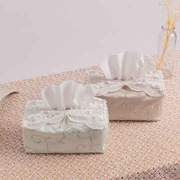 【禮物】Calista 慕夏藝術訂珠蕾絲蝴蝶結 刺繡緞布面紙套