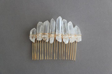 天然白水晶髮梳 天然水晶髮飾 新娘髮飾