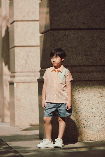 小精靈隨意躲藏在服裝身上,正式的襯衫款式,多一分活潑俏皮。輕薄又透氣的面料,讓孩子在悶熱的天氣也能清爽又舒適。台灣手工製作,用透氣、舒適、柔軟的有機棉用心呵護每個孩子。____________________________________*品牌精神*愛要講究,不要將就!做了13年廣告造型師,我以前只在乎美不美,但自從成為媽媽,孩子的健康舒適成為我第一優先的考量。我發現面料裡面有許多化學毒化物,會經由皮膚表層滲透進入體內,無形中對正在發育的孩子身體造成毒害,同時也對環境造成傷害。一棵樹的三大需要是什麼?陽光、空氣、水!孩子的衣服三大需要是什麼?健康、舒適、美!第一要健康,布料要100%有機無毒。第二要舒適,除了要有好面料,還要有好版型。立體剪裁,孩子才能行動自如,自由自在,快樂成長。第三要美,美不光是可愛,要在可愛中流露帥氣,自然中產生自信。理想的設計創造自信,自信的孩子張開翅膀!設計與剪裁工法比照成人時裝製作,除去多餘的裝飾,將版型著重於比例、線條、剪裁,並使用單純不單調的色彩與拼接手法設計出有趣而充滿創意的美學效果服飾。baby baby cool 與您一起以「愛與美感」透過服裝設計從生活中培養孩子美學感受力,用日常穿著從肌膚守護健康。除此之外,我們也要用童裝展出台灣設計實力在國際間被看見。就如米開朗基羅把現實的限制轉變為藝術,證明了創造力真正的本質是展現自我,我們希望把這種精神運用到bbc的設計概念。bbc把成人時裝的設計和工法運用在孩子的衣服上,突破童裝的框架,製作出時尚、健康的台灣服飾品牌。*把造型經驗融入設計概念*運用拼接的手法讓衣服版型更合身有型,設計有趣而充滿創意的美學效果。以俐落的線條、時尚的設計和極簡的用色讓baby呈現不同的自我風格。簡單的衣服,設計起來並不簡單把多餘的設計元素由服裝上除去時,比例、線條和剪裁等更細的考量就會被放大,這需要對人體身材比例構造更深入地了解,例如:幾何平衡、正面和負面空間以及各部位和整體之間的和諧。*原創設計團隊*由專業廣告造型師、新銳設計師、留日打版師與資深車縫師協力合作全自製服飾。將版型著重於比例、線條、剪裁,並使用單純不單調的色彩與拼接手法,設計出有趣且充滿創意的美學效果服飾,讓世界看見台灣童裝設計實力。*使用立體剪裁設計*運用名牌服飾才會使用的特殊立體剪裁方法,讓衣服更為立體,有型立裁是近年來新式的手法,所以從設計到製作的花費與難度都遠比一般的作法高。何謂3D立體剪裁 ?使用接近人體比例的人台,將布連接覆蓋在人台上,運用剪接,摺疊縮縫、抓皺、別住等技法,一邊剪裁一邊做出造型,可以再製作當下明確看到布料與人體之間的3D立體空間,以及人體各部位線條與結構,但因剪裁過程中需耗費許多布料,所以製作成本較高。我們認為:孩子是立體的所以運用成人時尚3D立體剪裁的工法,讓孩子更能展現自我的風格,使用最高規格符合歐盟GOTS認證100%有機棉為面料,和無毒副料,全程台灣手工製作。*培養孩子的美感素養*美感素養是一點一滴從生活中潛移默化,美感教育從生活中做起。跟著baby baby cool 在日常生活中發現「美」。▬Happy. Healthy. Honesty.期待孩子們富有快樂、健康、真誠做一個自信的自己!▬國際認證通過GOTS認證 100% 頂級有機棉布料baby baby cool 所使用的有機棉布料均符合全球、美國、日本及歐盟最高規格有機認證協會標準。為了整合各國不同的有機棉認證標準,因而誕生全球有機紡織品認證標準GOTS(Global Organic Textile Standard) ,他們對有機棉有最嚴苛的監管制度。GOTS的標準內容包含種植、紡紗、織造、印染、整理、製造、包 裝、標籤、出口、進口和所有的天然纖維,全部都需符合高度健康與環保標準,並定義有機棉需採用有機農法栽種,土地須休耕三年,不使用化學肥料、農藥,藉由有機肥料培養出健康的土壤所栽培出的棉花,經認證無化學藥物殘留後才能被稱之為有機棉。 根據統計,經認證的有機棉僅佔全球棉花產量的2%。*從有機棉花纖維到服飾*每一塊布料的形成來自每一條可織縫繡綁的紗線,而每一條紗線則來自每一種纖維搓揉在一起而成。baby baby cool 商品使用日本原裝進口,100%有機棉纖維紗線製成的有機棉布料。無鎳無重金屬釦所有副料皆為安全無毒材質,ex:釦子、拉鍊織帶。