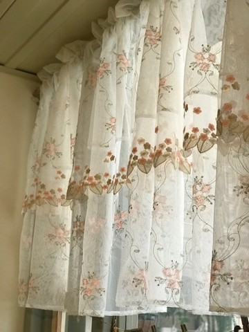 網紗刺繡小碎花透明窗簾咖啡簾門簾
