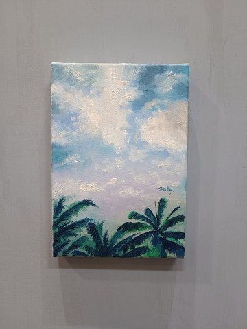 白雲椰子樹-油畫作品 展示品 教案樣本 換季出清 海洋油畫