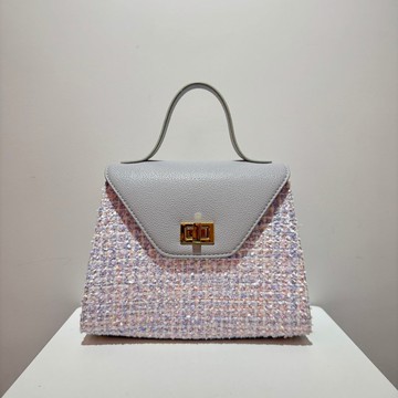 Étoile Élégante 優雅星芒系列靈感源自夜空中最微光卻最堅定的星芒,這個系列為每位溫柔堅定的女性而生。透過質感花呢、格紋、絨面與皮革的交織,展現內斂中的光彩;無論是日常通勤還是特別時刻,每一款都像星光一樣,靜靜為你點亮生活的細節。優雅,不必張揚;閃耀,由內而發。適中尺寸與挺拔包型,像暮光中閃耀的女主角,精緻但不柔弱相較於系列中的其他款式,整體尺寸稍大,結構挺拔,提把也設計得更高雅俐落,適合正式或高需求日常場合。淡灰粉紫色系交織成星紗感的粗花呢布面,讓溫柔氣質升級。沒有附鍊帶,專為手提或短肩背而生,實用容量與氣場兼具。特色:溫柔堅定、氣質沉穩、實用容量、四季皆可————————尺寸約 22.5cm(下寬)× 17cm(高)× 12cm(底厚)提把高度約7.5cm背法手提/肩背/斜背(附雙背帶,可拆卸)材質高質感素皮革、亮絲絨布、金屬旋扣、金屬鍊條