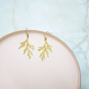 【福利品】自然冷衫葉設計黃銅耳環