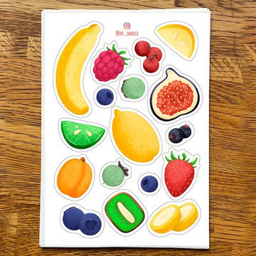 我提請您注意我以自己的風格繪製的水果貼紙。貼紙包含:香蕉、覆盆子、檸檬、無花果、醋栗、藍莓、醋栗、奇異果、杏、草莓、酸橙。貼紙已預先剪好,無需剪刀即可輕鬆撕下貼紙!----------方面:紙張尺寸:210 x 148 毫米----------材料:貼紙印在優質亞光紙上。----------細節:貼紙不防水。由於計算機設置不同,顏色可能會有所不同。