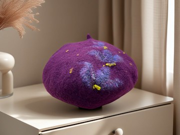 絲光美麗諾羊毛帽(貝蕾帽)- 紫蘭幽韻,是兩站間手作坊的Betweenstops系列精心打造的一款設計。以紫羅蘭色 為基底,展現高貴典雅的氣息。帽頂一角點綴著蘭花圖案,彷彿靜謐幽谷中的蘭花悄然綻放,帶來細膩而優雅的意境。而在右耳上,一朵立體紫羅蘭色花朵巧妙綻放,使整體設計更添層次感與女性柔美韻味。這款貝蕾帽選用 絲光美麗諾羊毛 細緻製作,手感柔滑輕盈,兼具溫暖與舒適。透過精湛的 濕氈工藝,確保每一頂帽子皆獨一無二,呈現出藝術感與匠心之美。不論是秋冬時節的時尚點綴,或是搭配精緻服飾,這頂貝蕾帽皆能展現獨特魅力。讓「紫蘭幽韻」成為你造型中的優雅亮點,散發溫柔且細膩的個人氣質!https://live.staticflickr.com/65535/54317974276_0b5dcf398f_b.jpg材質:絲光美麗諾羊毛尺寸:直徑 27 cm / 頭圍 56-58 cm (羊毛本身些微彈力)因手作產品,尺寸會有些微差距。https://live.staticflickr.com/65535/54318395660_8a85c431c2_b.jpg**羊毛洗滌小叮嚀**o 將物品放入清水或加入少許中性洗滌劑輕輕拍洗即可,請勿搓揉、扭轉。o 水中取出後,用乾布按壓把水分吸乾,晾於陰涼通風處即可。o 收藏:放入夾鏈袋內密封即可。購買須知:拍照因光線、場所不同,顯色略有不同,顏色以收到的商品為主。價格不含關稅及運費。由於手作及客製化商品的製作成本較高且過程較為繁瑣,我們無法接受七天無條件退換貨退款。如有任何問題,請隨時私訊我們,我們將竭誠為您解決。謝謝您的支持與理解,下單即代表您同意上述說明。讓這條絲巾成為您的時尚配飾,同時展現您對環保的關懷與美學品味。