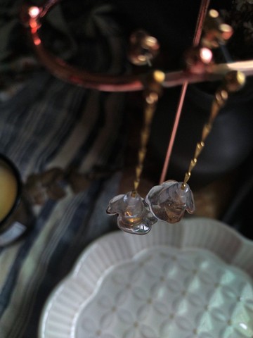 裙擺花長鏈垂墜耳環 黃銅耳飾 /冰花原色瑪瑙