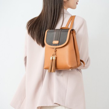 百變換蓋真皮後背包 - 深棕雅典(含流蘇)