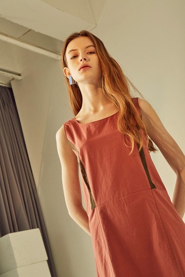 夏季微露膚洋裝 磚紅