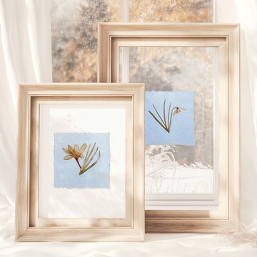 迷你畫廊牆 2 件組藏紅花雪花蓮花花植物獨版印刷