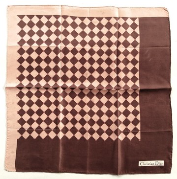 復古 Christian Dior 幾何圖案絲巾,21x21 英吋,附有品牌吊牌