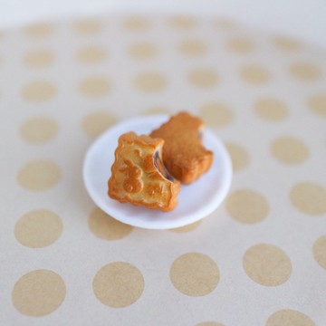 **靈感** - 以廣式月餅為靈感,將中秋節元素與時尚結合,讓文化傳承成為日常佩戴的亮點。**商品特色** - 方形廣式月餅造型,帶有「小兔望月」的設計。- 尺寸:長寬約1.9cm,厚度約1.2cm。- 單支販售,如需一副請輸入數量2。- 此為咬一口內有豆沙和蛋黃餡❤- 另有完整未咬的月餅,快來湊一對!- 約三分娃娃可用,可以和其他三分系列蛋黃酥、綠豆椪一起玩哦!**材質** - 樹脂黏土、日製保護漆,精細製作。**包裝** - 附手寫耳環背卡、小禮物一件,隨單附保養卡。**保養方法** - 使用前後請擦拭,避免長時間泡水。- 不用時請存放於乾燥陰涼處,以防變色。**優惠活動** - 訂單滿NT$500(不含運費)將贈送一件作品。- 每筆訂單皆附贈迷你福袋,內容隨機,買愈多送愈多。**購買提醒** - 請務必確認後再下單,取消訂單或重訂會影響出貨進度。- 若有過敏經驗,推薦選擇樹脂耳勾或耳夾。- 務必根據您的體質及使用習慣自主選擇,此非蜜斯專業。**貼心提醒** - 每件作品皆為手工製作,可能會有微小誤差,敬請見諒。- 照片因電腦顯示器不同,顏色可能稍有差異。**聯絡方式** - 如有任何問題,請務必隨時聯絡我,我會很樂意為您解答所有疑問。