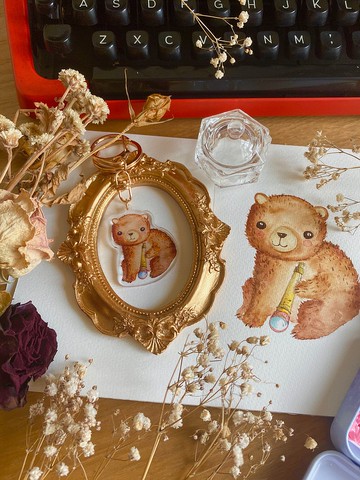 古董雕花望遠鏡,是中古世紀貴族看劇的好夥伴遠遠的能看見什麼呢?復古文具-小熊望遠鏡尺寸:高約5.5cm,寬約5cm(壓克力尺寸)材質:壓克力,雙面印刷,金屬鑰匙圈環