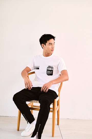 男款黑色概念性印花短袖T恤|8E9FJK3