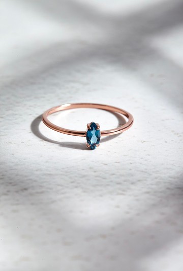 馬眼形倫敦藍托帕石925純銀戒指(銀/玫瑰金) | 托帕石
