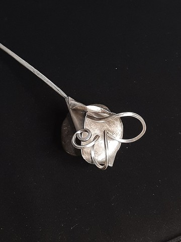 以輕薄的金屬片鍛敲出海芋花的造型,再將簪子的主體由粗到細,一體成型,巧妙的延展成為海芋花的花蕊,圍繞在花朵的周圍,形成一個浪漫而優雅的氛圍。在配戴時那優雅的氣質也隨著海芋花的綻放,更添迷人的風情。※這件海芋花朵本身是用鍛敲的方式打造成型的,也就是說花瓣原本是平面的金屬片,高溫加熱軟化後用鐵錘敲打出立體感後形成海芋的造型。有別於花朵質感精緻光滑的表現手法,它的表面會有手工感的錘痕被保留下來,若您對此所疑慮,歡迎來信與設計師討論後再決是否下單。※ 材質 : 黃銅鍍銀※ 顏色 : 古銀※ 尺吋 : 髮簪總長度約16cm,簪體沒入頭髮的長度大約為12cm。【 貼心小叮嚀 】 髮簪本身為古銀色,而金屬在自然狀態下佩戴久了,顏色會因為氧化而較暗。建議髮簪不配戴時盡量放在盒子或夾鏈袋中收藏。當然設計師們也喜歡髮簪氧化後顏色比較深的感覺,有一種老飾品的意境。但是如果您喜歡髮簪顏色較為明亮。那建議可以先用800的細砂紙去拋光它,再用金屬亮潔劑去擦拭。※ 或是可以寄回來,幫您免費做保養服務喔~※ 手工製作,敲敲打打,耗時耗力,需要較長的工時,下單後還請耐心等候。※ 每件作品都是設計師親手打造,無法像工廠生產的一般標準化。因此每一件都會有手工製作的痕跡或色差,如果有疑慮的話請先來信與設計師溝通後確認再下單。【免費的保養服務】飾品在自然配戴的條件下,如有故障或因配戴久了而產生的顏色氧化現象,我們工作室可以提供免費的保養維修服務。※ 如因外力(例如重力碾壓)而導致的毁損則需視毀損程度酌收費用。※ 如需維修可先拍照傳給設計師看,經過討論後如果可以維修再寄給我們。※ 尺吋 : 髮簪總長度約16cm,簪體沒入頭髮的長度大約為12cm。