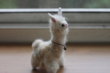 羊毛氈 原毛米色羊駝(大13.5cm)