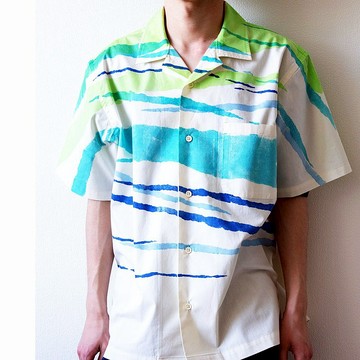 波浪圖案 Aloha 風格短袖襯衫 1014 棉米色男女通用