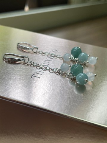 寫意//天然翡翠A貨 藍水 白翡 925銀 耳勾