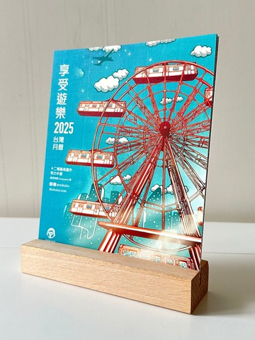 「享受遊樂 2025」台灣版月曆連座枱型實木座 - 高品質畫作印刷人生就像一張遊樂場的入場券,入場後您可以選擇不同的遊戲。有些在觀看過渡中的現寶,有些能讓您自由穿越時間和地域,有些在找尋記憶中的光影,更有些像摩天輪般高低起伏。無論您選擇哪種遊戲,記得要讓自己享受遊樂!高品質畫作印刷尺寸大小:14.8 x 18 厘米製作形式:原畫作高品質印刷選用紙張:英國「剛古」紙白色條紋 220gsm (屬畫紙質感)貨品將會放入防水的透明袋內,同時更附有我們的留言字條。此外郵寄更會加入厚卡紙,以確保貨品可以安全送達。當我們收到您的訂購後,會於指定的業務工作日內發送貨品,發送範圍更可至海外。請確保您在Pinkoi和Paypal內所填寫的地址是否正確。