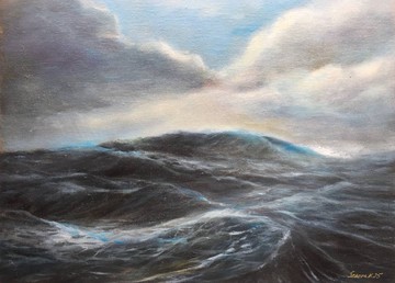 原始海景油畫在帆布天空風景雲彩藝術品海洋藝術