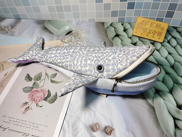 海洋生物袋物系列-日本限量布料手作玫瑰花鯨魚筆袋-鯨魚筆盒-