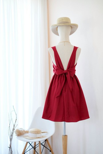 暗紅色連身裙 伴娘服 派對雞尾酒短裙 露背設計