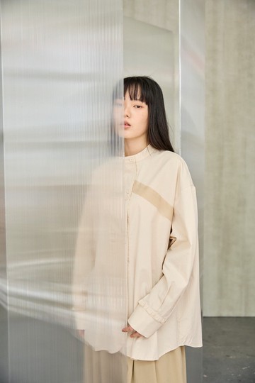 織帶拼接無領襯衫