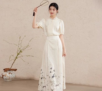 新中式復古中國風 蝴蝶印花側邊拉鏈 上衣/馬面裙