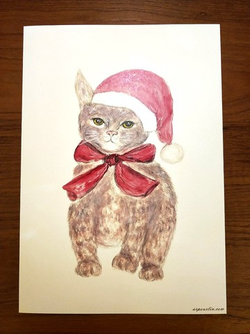 聖誕裝飾/聖誕節/貓/掛畫/海報/裝飾畫片/居家佈置/手繪/明信片