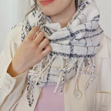 Hana Mokuba 大格紋流蘇套頭圍巾