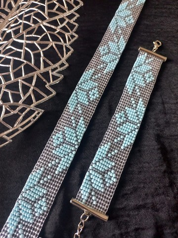 這套名為“天堂之花”的套裝由透明和藍色的珠子縫製而成。該套裝包括一條手鍊和一條頸鍊。捷克寶仕奧莎珠製成的手鍊和項圈。寬度 2 厘米。長度根據您的參數。訂購時請以厘米為單位註明所需長度。