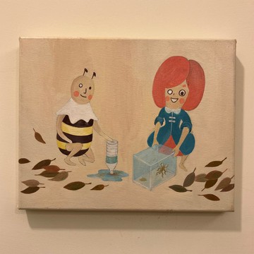 小女孩抓蟋蟀壓克力畫