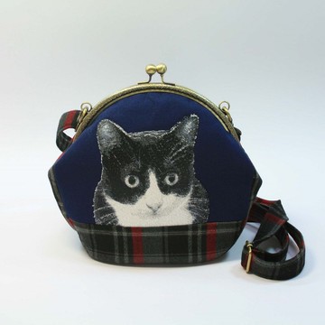 刺繡 20cmㄇ型口金斜背包13-黑白貓