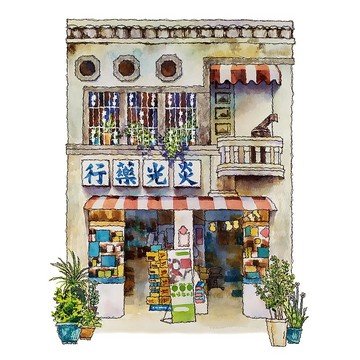台灣文青旅繪-台南街屋-炎光藥行-數位微噴懷舊海報