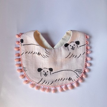 熊寶寶愛花花 手工純棉六層紗葫蘆領圍兜/可雙面用
